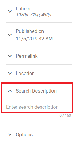 Post > Post settings > Search Description
