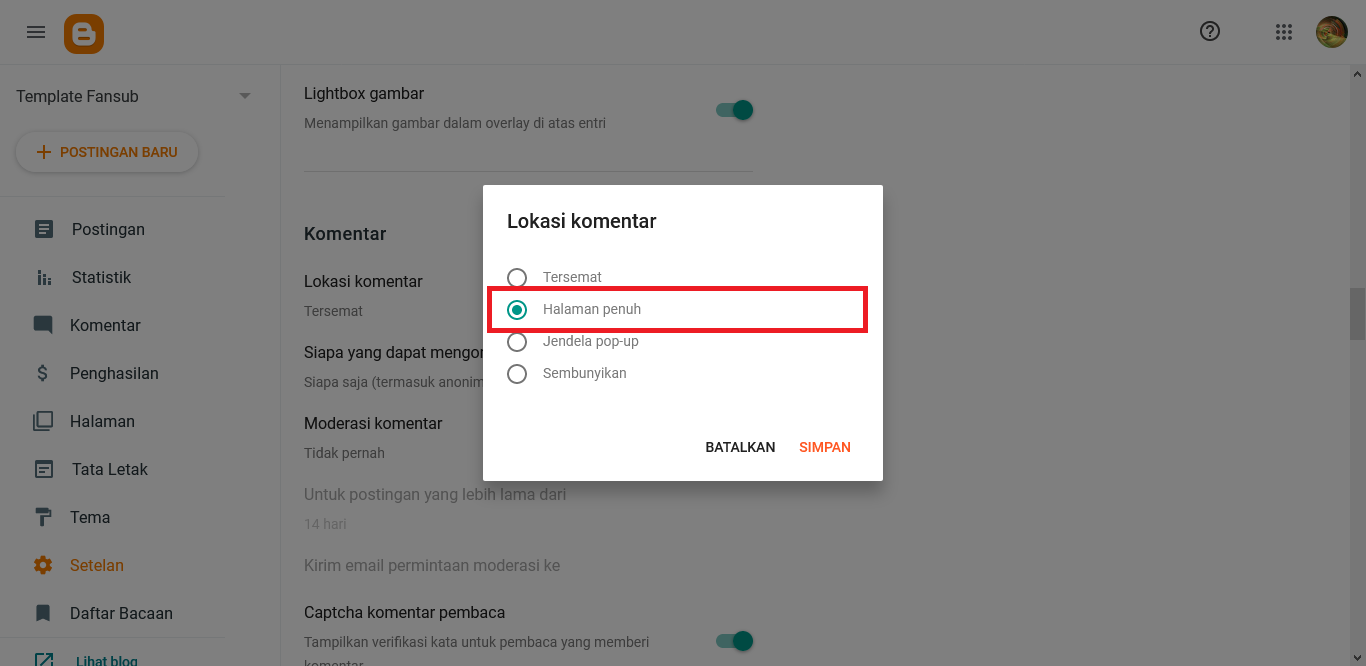 Hasil Contoh Comment