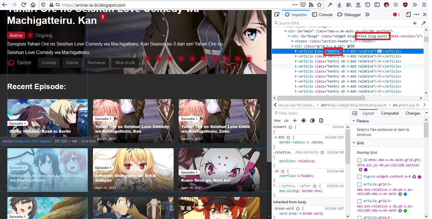 Kalau tidak berjalan, pastikan ada class hfeed blog-postsdanhentrypastikan tetaknya beda seperti di screenshot.